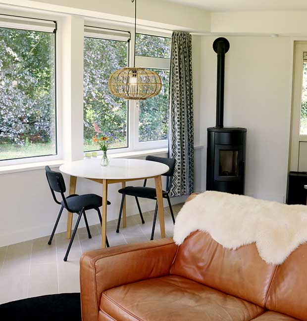 Het vakantiehuis is duurzaam ‘cradle-to-cradle’ gebouwd, ingericht met rustige en natuurlijke materialen, energieneutraal en ligt middenin een natuurlijke omgeving.